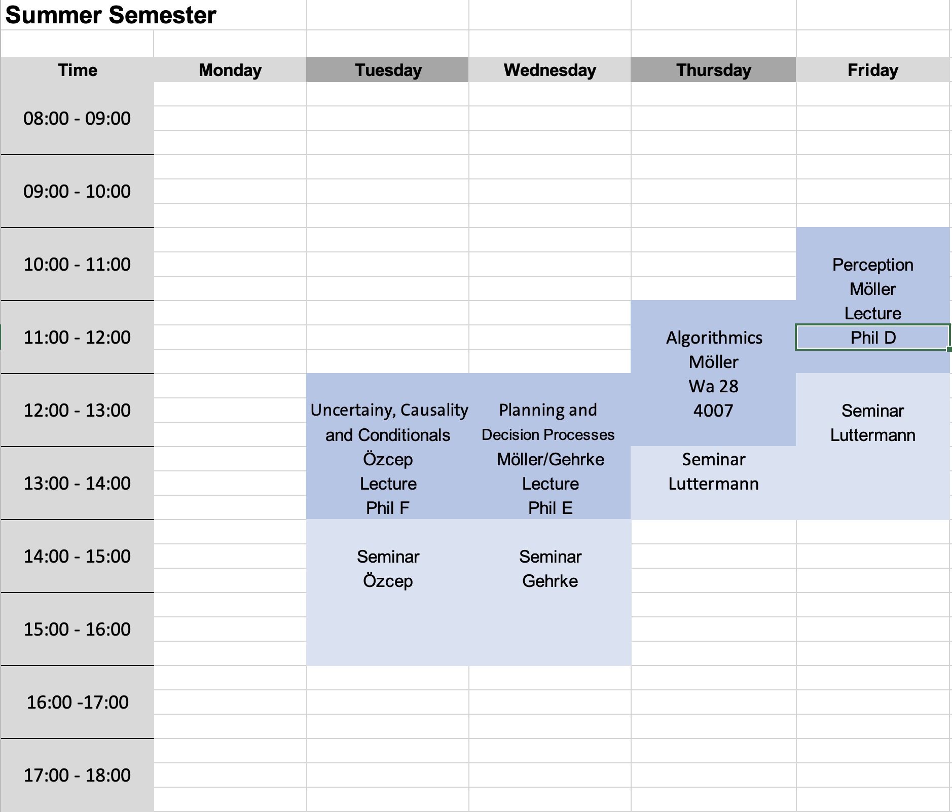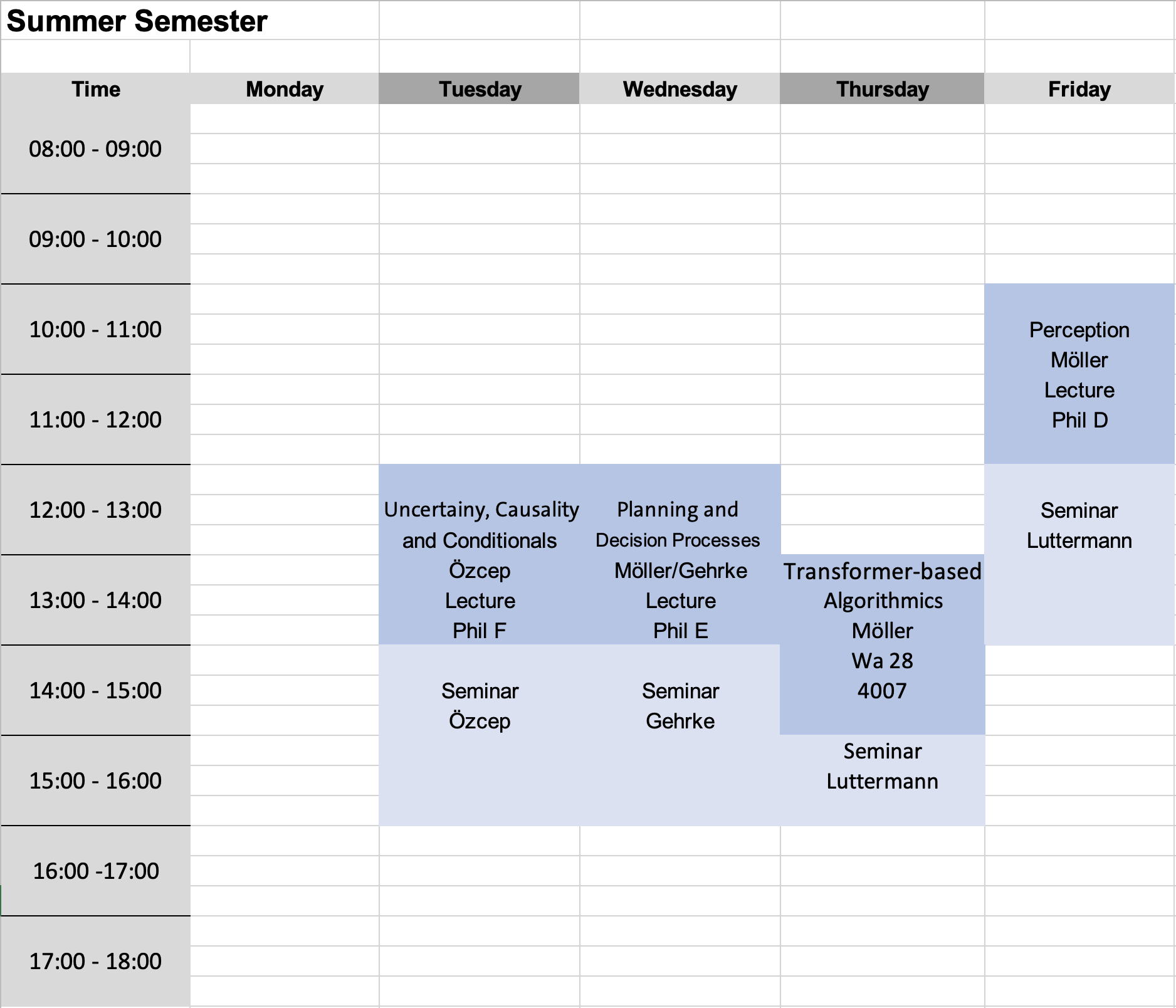 In summary, in addition to a critical-analytical examination of intelligent agents, students also acquire the necessary theoretical and practical skills to develop new safe, trustworthy, robust, transparent and explainable agents themselves and to learn to evaluate a wide range of possibilities and potential dangers by reflecting on social mechanisms and ethical issues. This core competence is covered in the degree program by three pillars (see below), whereby the first pillar covers general data and algorithmic competence, the second pillar covers modeling competence (especially for planning) in an agent and the third pillar covers modeling for the design of multi-agent systems and social mechanisms.